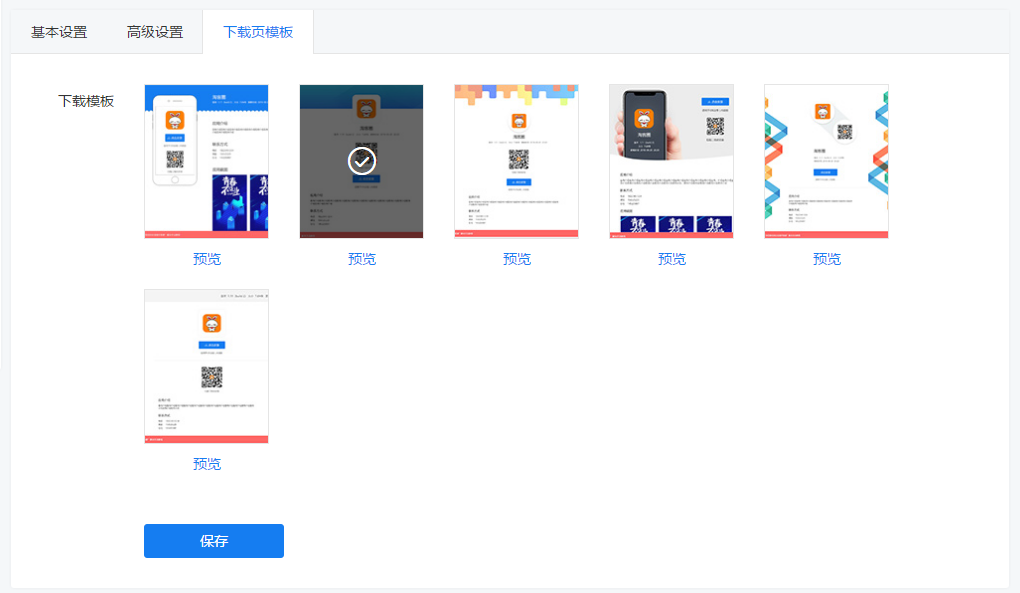 具体设置分成基本设置、高级设置、下载页模板